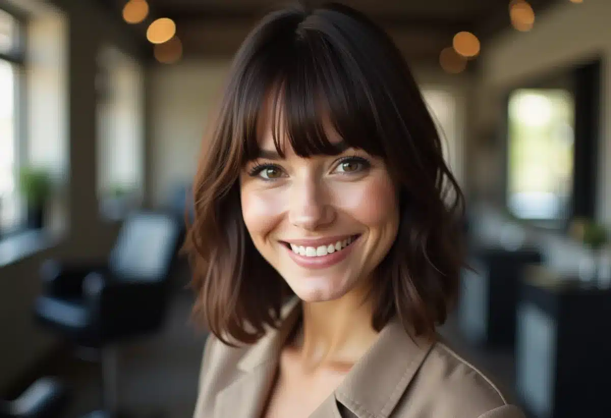 Le carré plongeant avec frange ajoute une touche contemporaine tout en encadrant le visage de manière élégante. La frange peut être droite, effilée ou rideaux, selon le style recherché. Pour sublimer cette coiffure, le plongeant dégradé peut offrir davantage de texture et de mouvement.